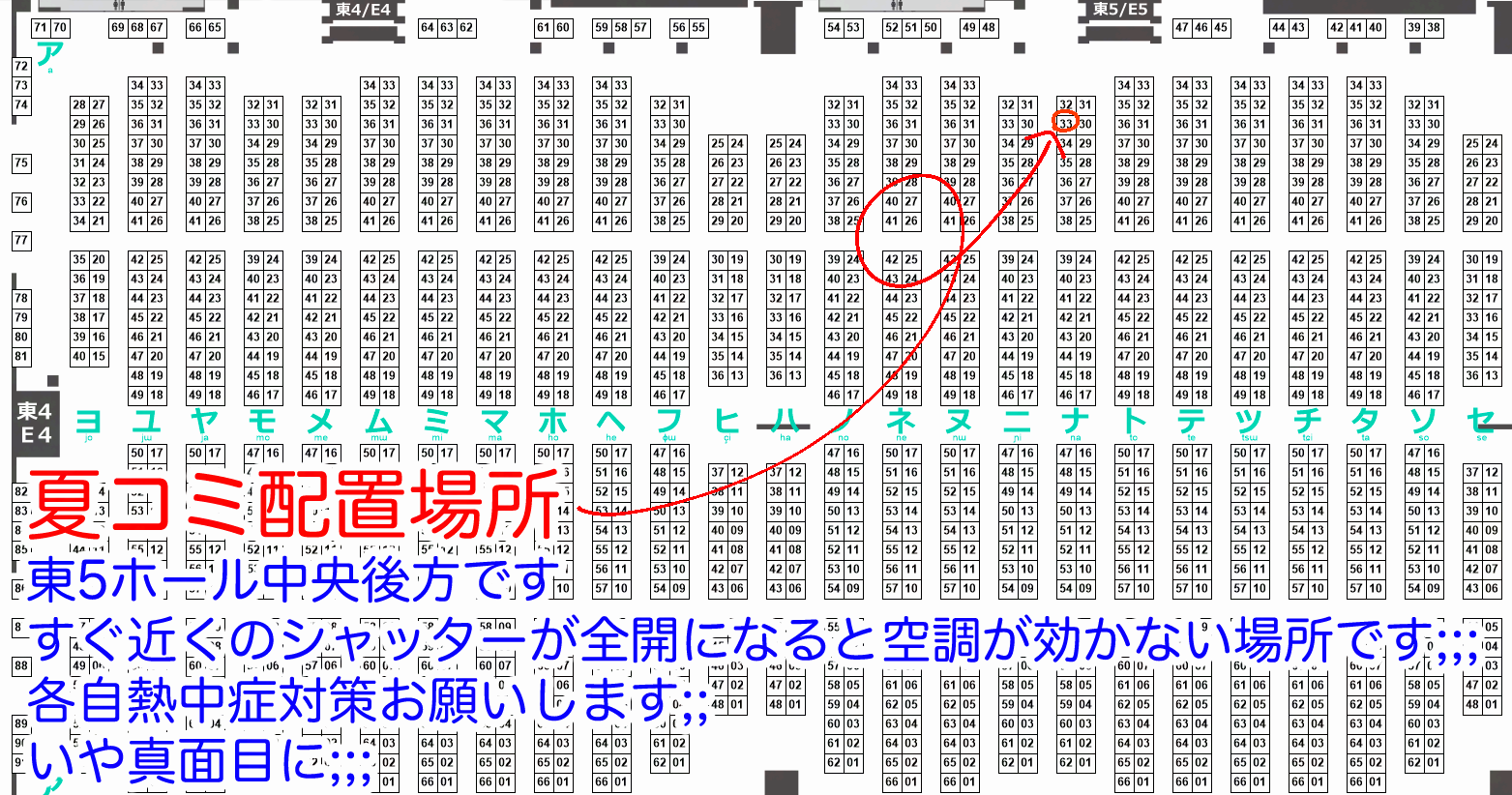 ◎貴方のサークル「時空警察高機動小隊」は、土曜日 東地区 “ナ”ブロック-33a(東5ホール) に配置されました。