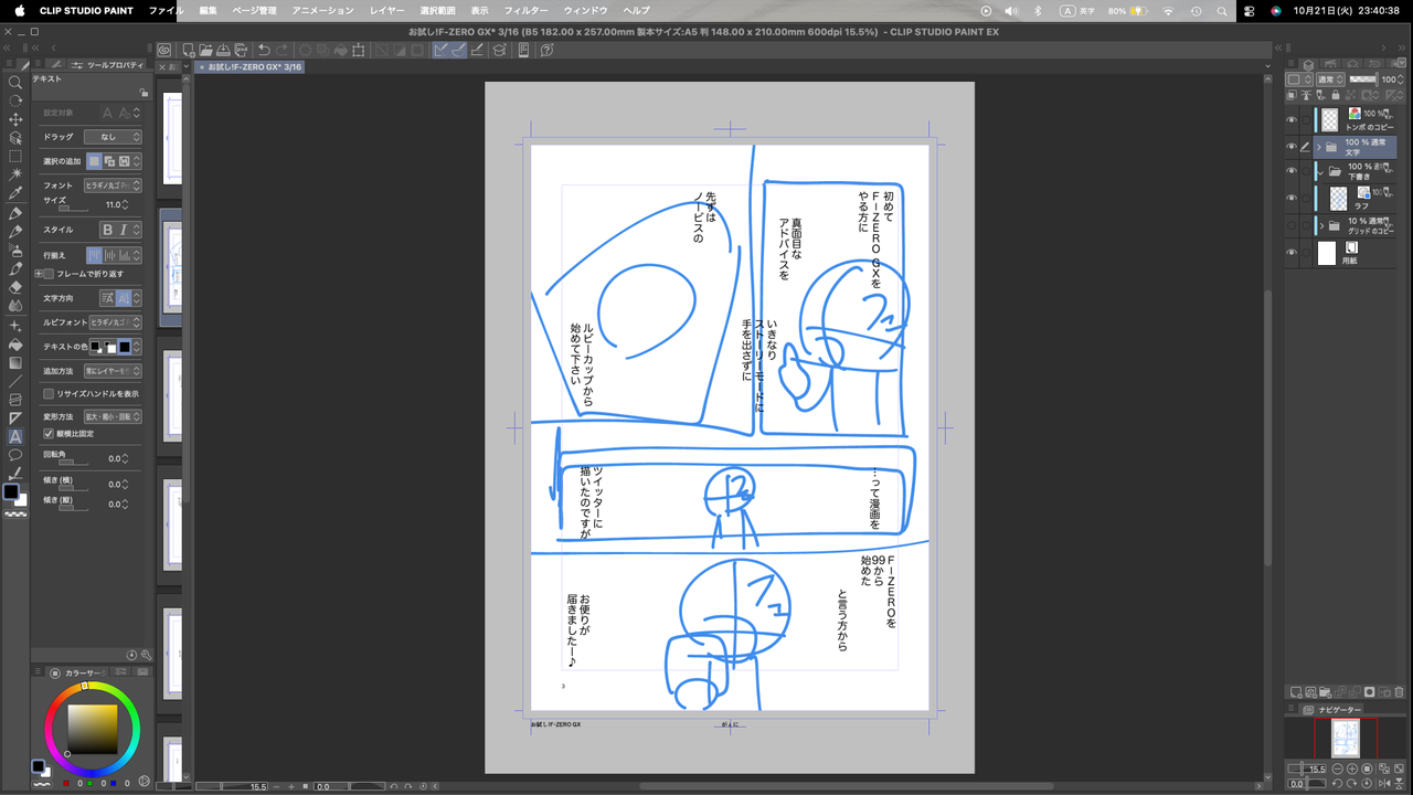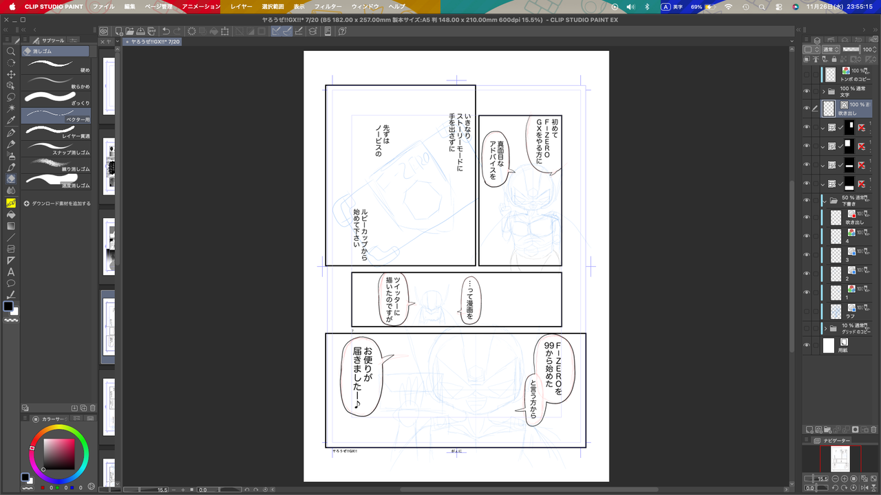 これを一先ず全ページやっつけて、セリフを確定させます