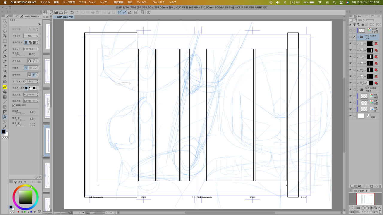 これも取り敢えず全ページ固めて、イメージを具体化させます