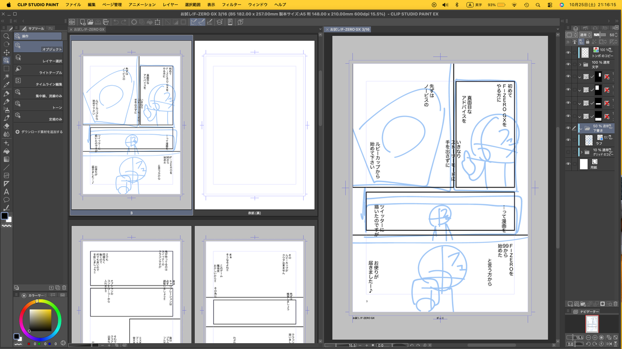 先ずざっくりコマ割りして、セリフをどこに置くか考えます